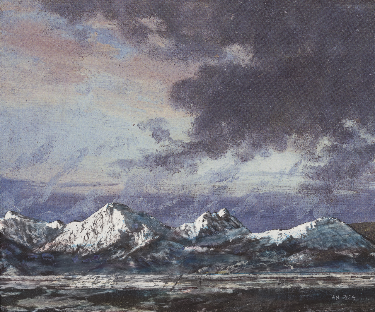 In meiner aktuellen Serie „Korrespondenzen“ zeige ich kleinformatige Papierarbeiten, in denen ich selbst erlebte Landschaften mit Himmeln aus der Kunstgeschichte und meinem persönlichen Bildarchiv kombiniere. Titel wie „Van Ruisdael in Rheinhessen“ oder „Friedrich in Arboras“ verdeutlichen die dialogische Verbindung von Vergangenheit und Gegenwart. Mit dieser künstlerischen Praxis stelle ich mich bewusst in eine Traditionslinie, die unter anderem durch Asger Jorn geprägt wurde: das Weiterdenken, Variieren und Aktualisieren bestehender Kunstwerke. Meine Interventionen hauchen historischen Bildwelten neues Leben ein und verankern sie im Hier und Jetzt.